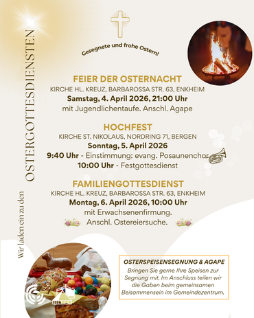 Hier sind die Termine unserer Ostergottesdienste, zu denen wir Sie herzlich einladen!