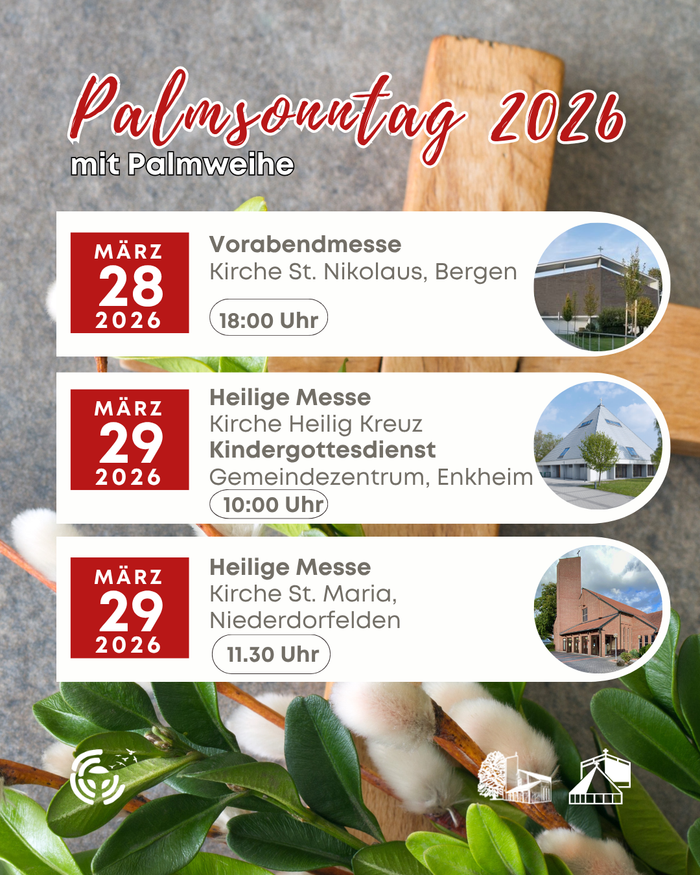 Hier finden Sie unsere Heilige Messe mit Palmweihe in Bergen-Enkheim und Niederdorfelden.